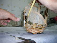 Estructura de mimbre negro y pantalla de papel hecho a mano de sisal, hojas de alcaucil y cascara de cebolla blanca.